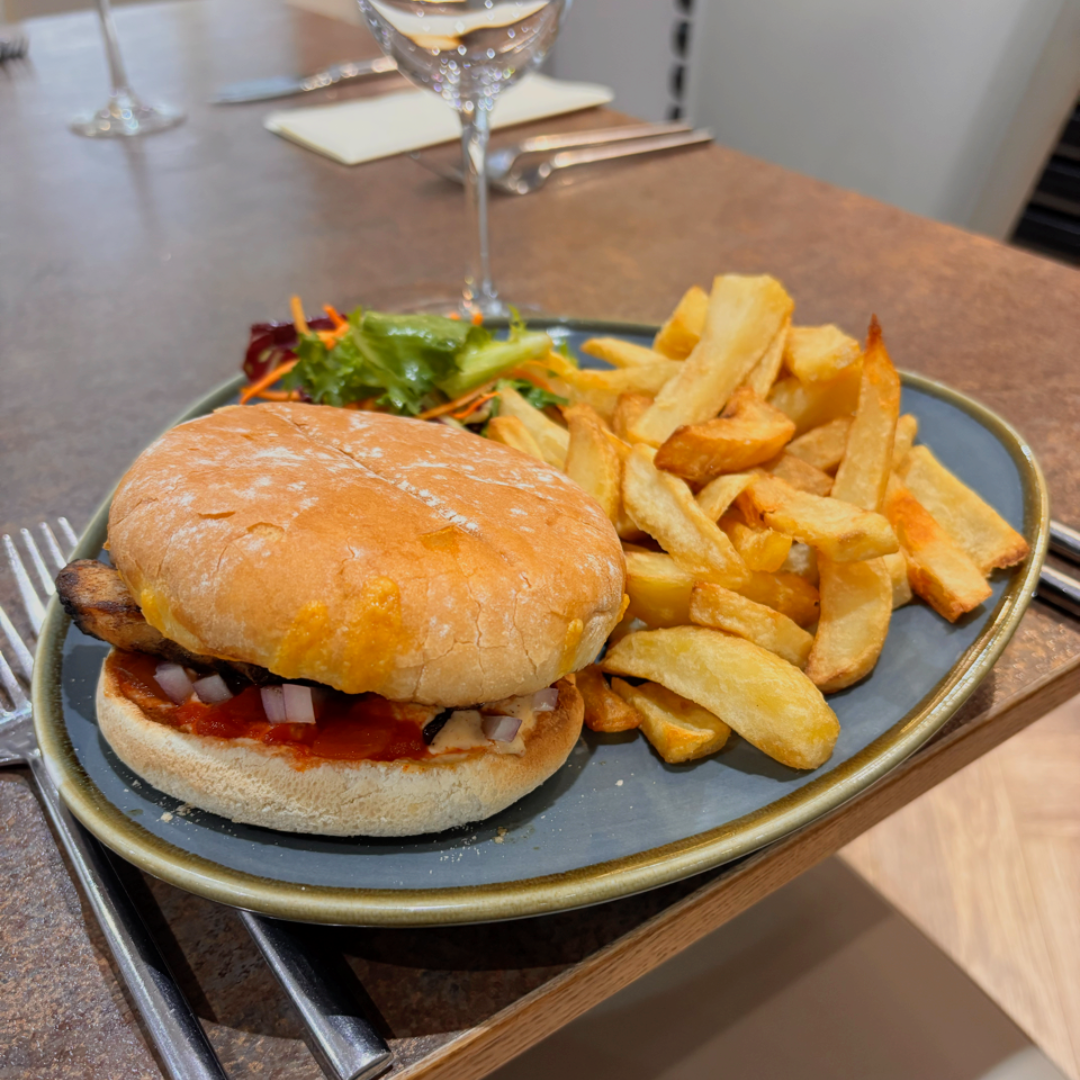 Served with Chive Mash, Roasted Vegetables & Diane Sauce